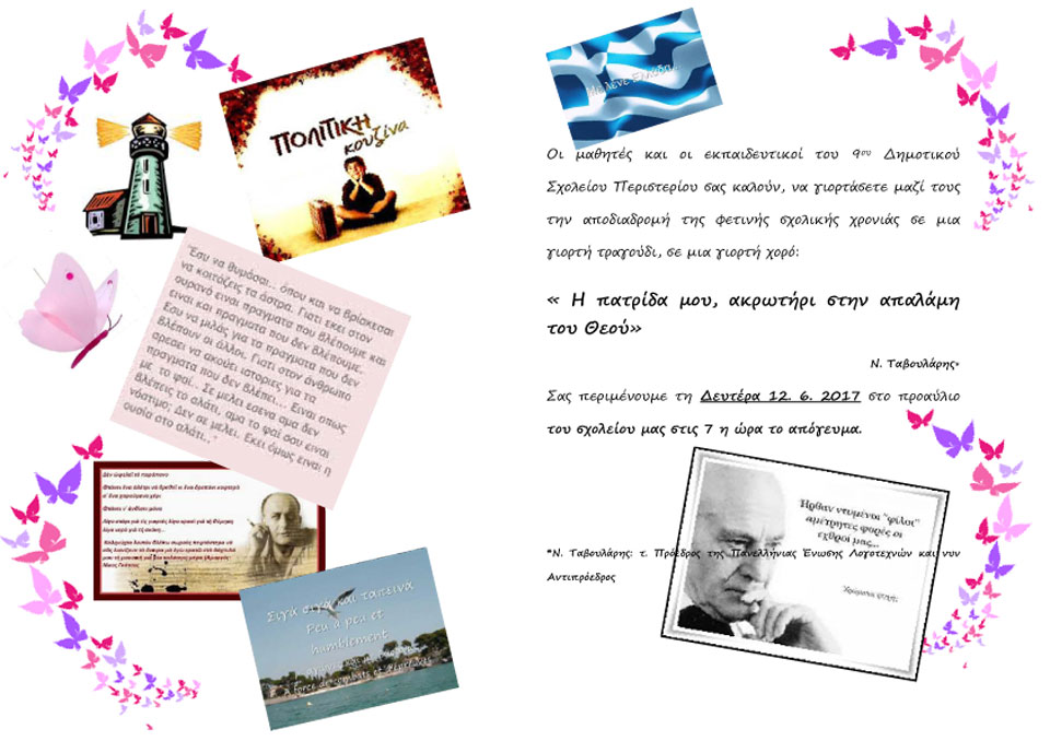 Γιορτή λήξης σχολικού έτους 2016-2017 300Δευτέρα 12. 6. 2017 «Η πατρίδα μου, ακρωτήρι στην απαλάμη του Θεού» Ελισάβετ Δακουτρού-σύγχρονος χορός / Elisavet Dakoutrou-contemporary dance